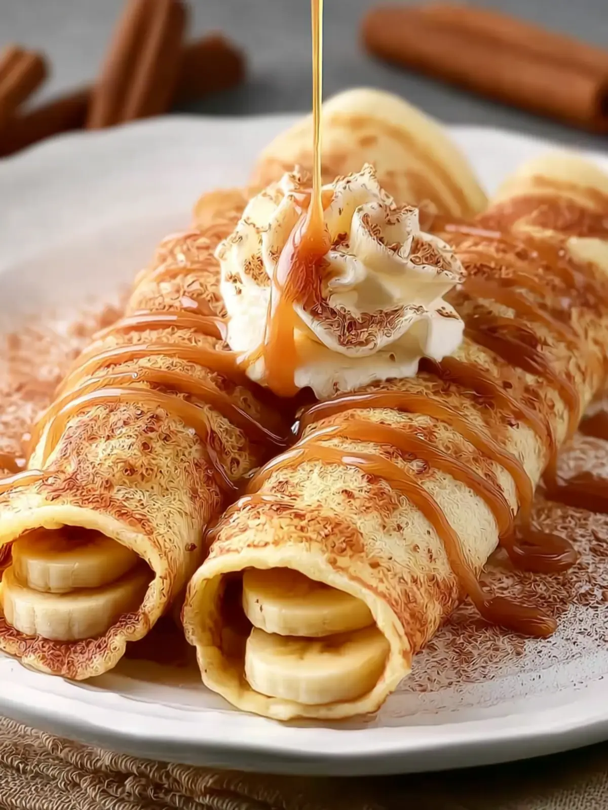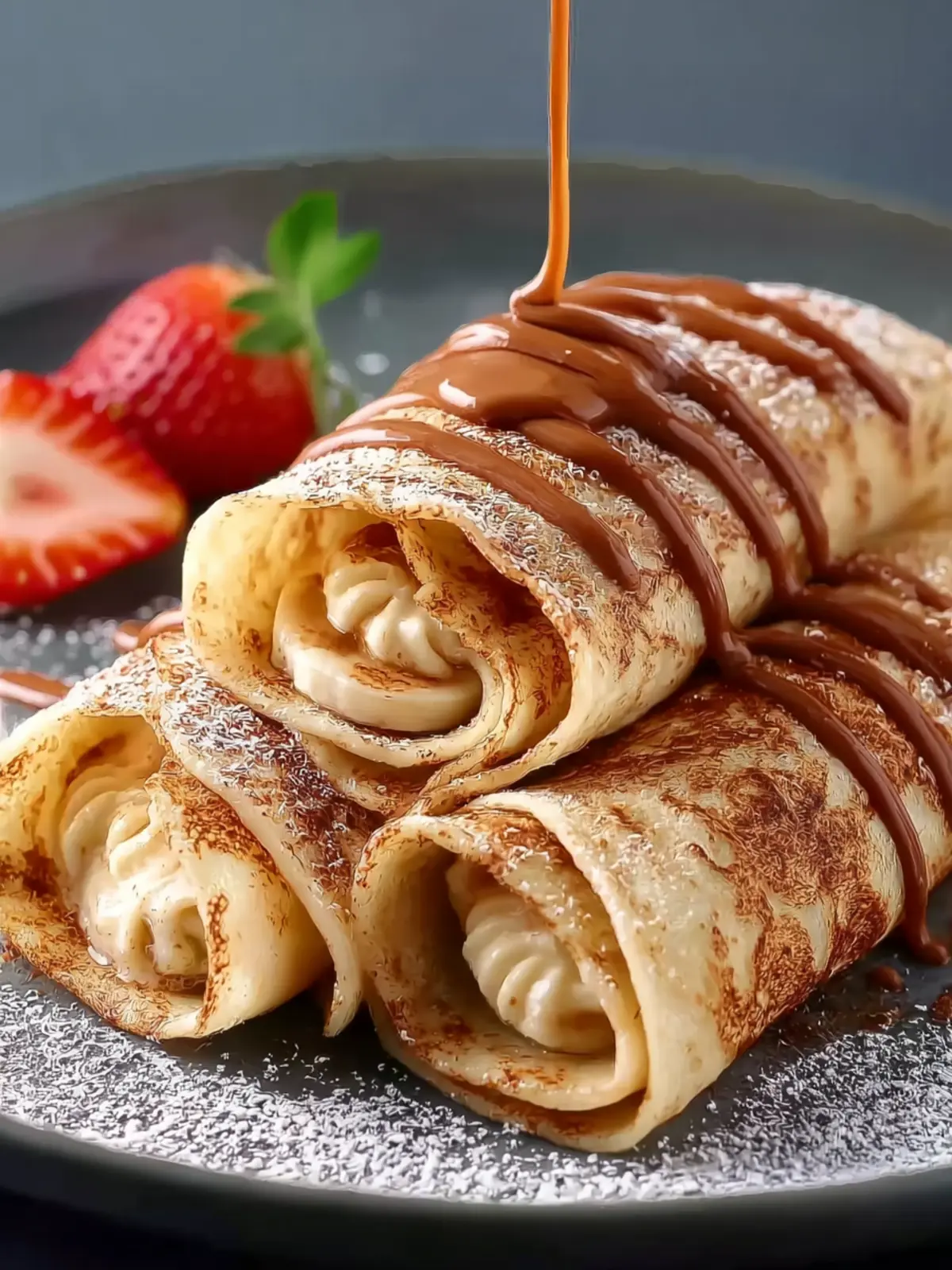 Delicious crepes filled with a cinnamon yogurt mixture, perfect for breakfast or dessert.