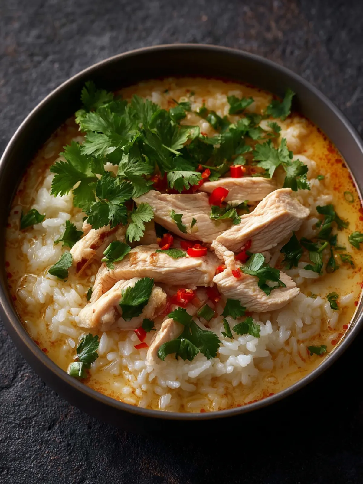 A sprinkle of coriander, turmeric, and fresh cilantro not only adds flavor complexity but also a burst of color to your Coconut Chicken Brothy Rice. Turmeric’s earthy notes complement the coconut milk perfectly, while cilantro introduces a fresh, herby kick.