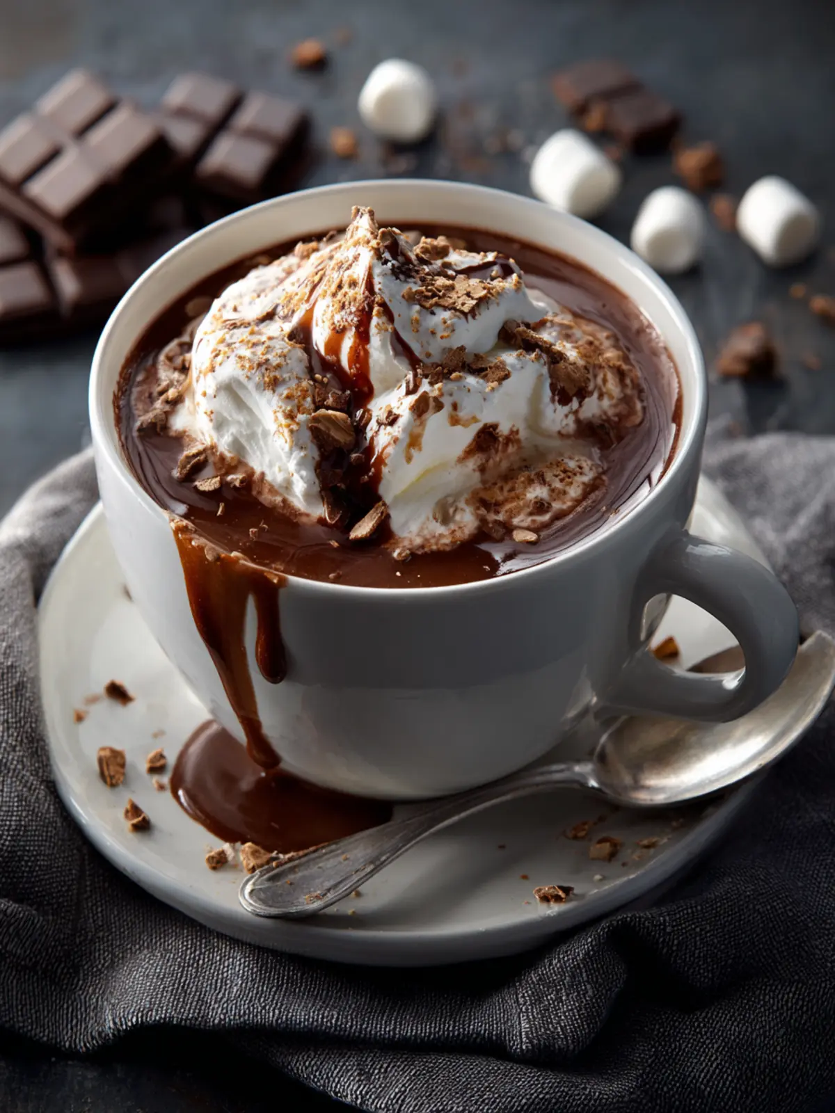 Toppings are where you can really let your creativity shine! A classic option is whipped cream, which adds a light and fluffy contrast to the rich chocolate. For an extra touch, sprinkle some crushed candy canes or chocolate shavings on top. Or, why not try a drizzle of caramel sauce for a sweet twist?