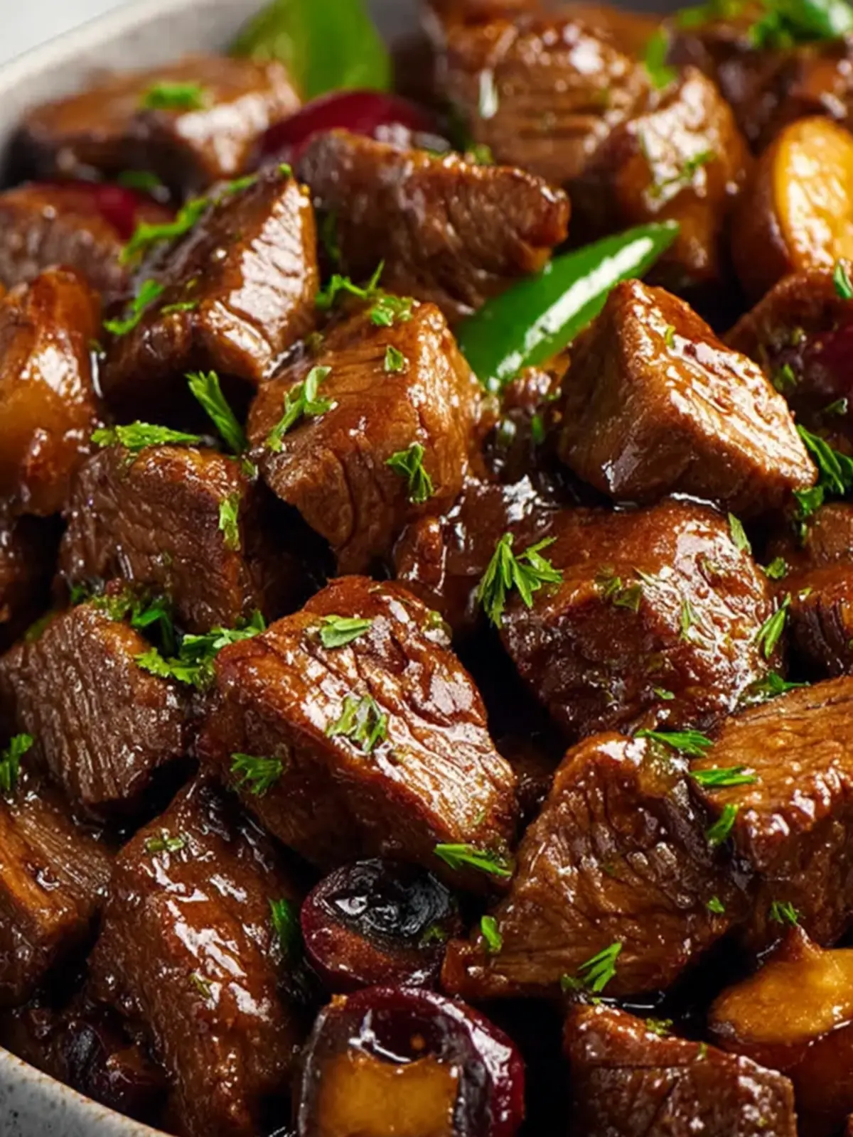 - 3 lb sirloin steak (cut into 1-inch bite-sized pieces)