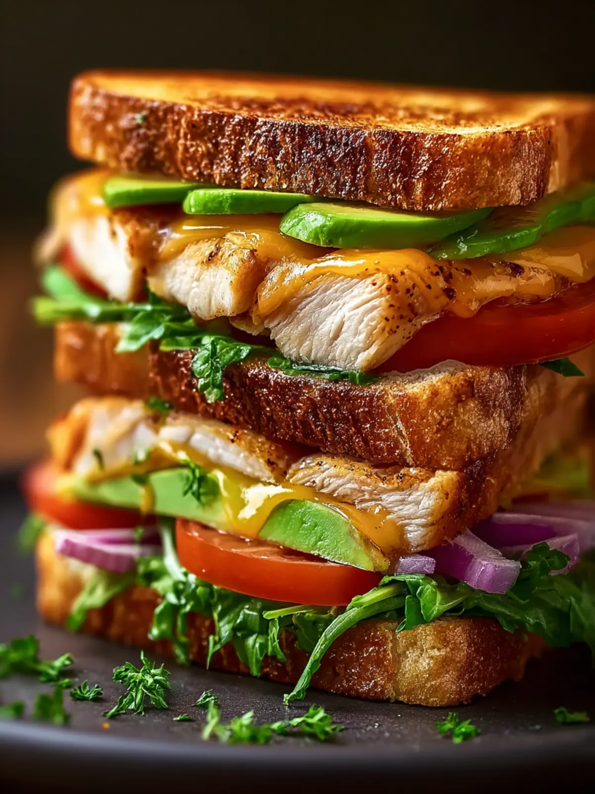 A delicious grilled chicken avocado sandwich loaded with flavor and fresh ingredients.