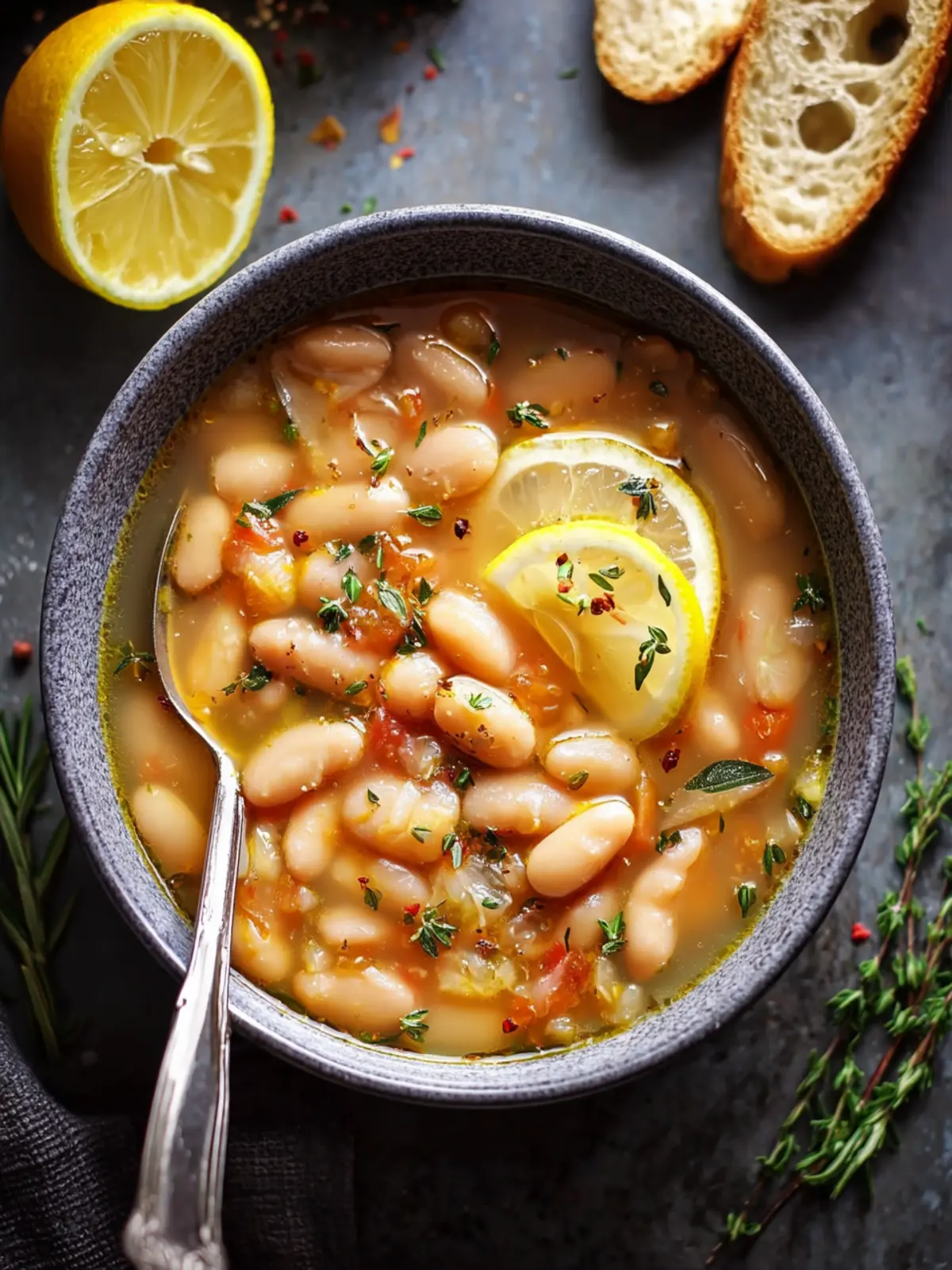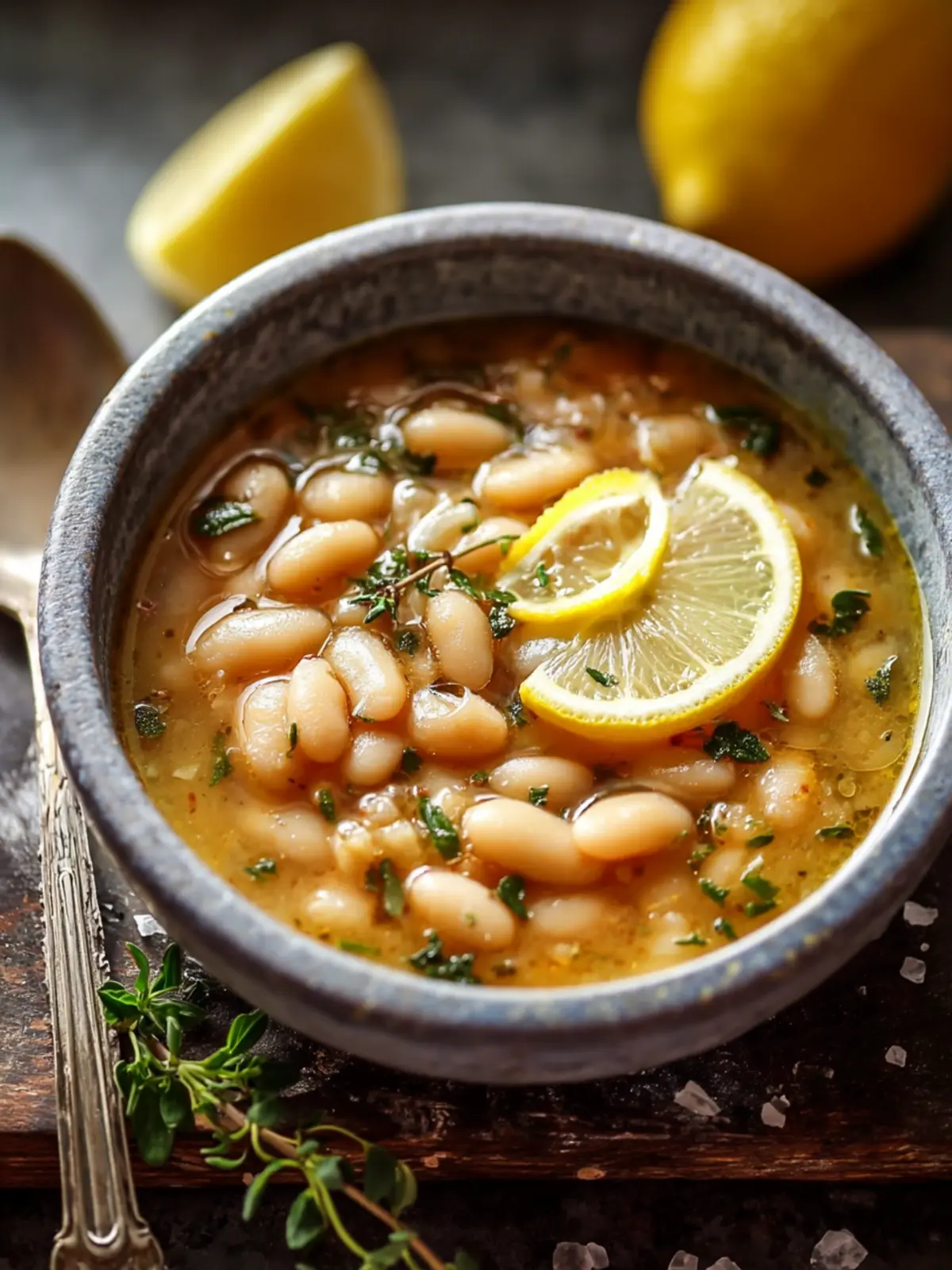 Greek White Bean Soup: Zesty Comfort with Garlic & Lemon