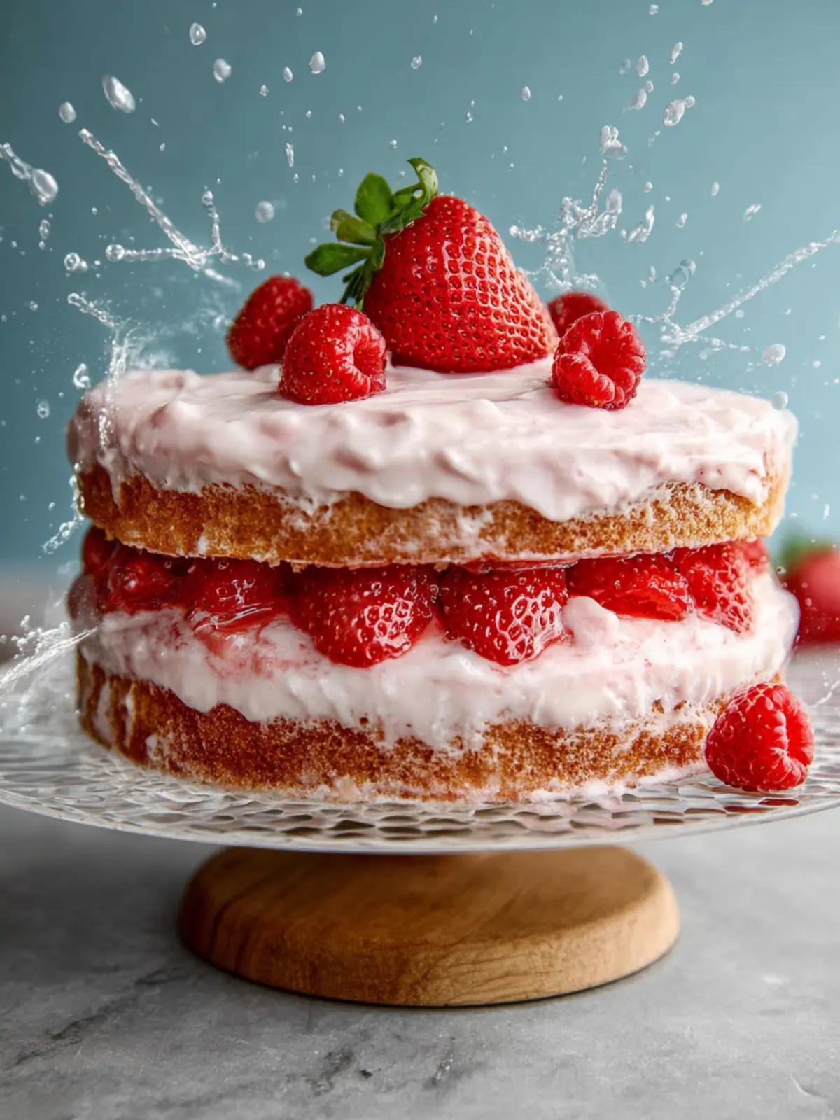 10. Layer and frost the cake, garnishing with fresh berries.