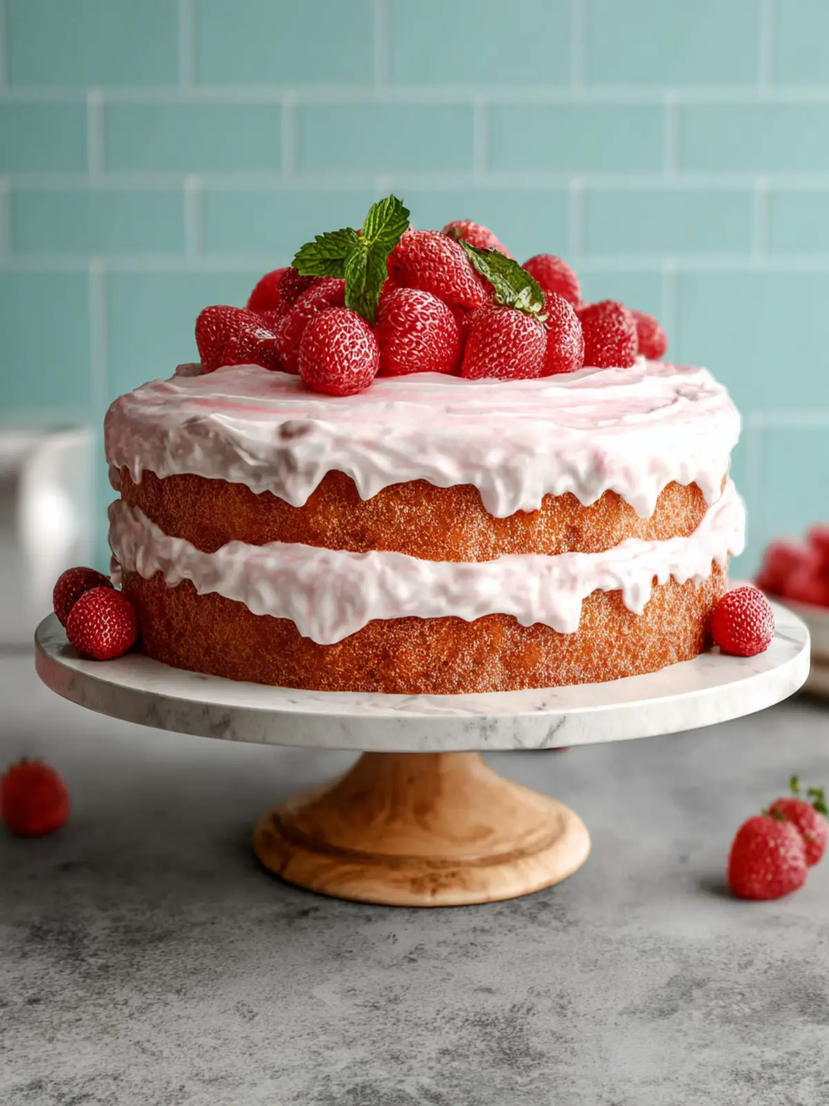 • Berries and Mint: Enhance the visual appeal by topping your cake with extra sliced strawberries or a medley of mixed berries. A sprinkle of fresh mint leaves adds color and a refreshing flavor burst.