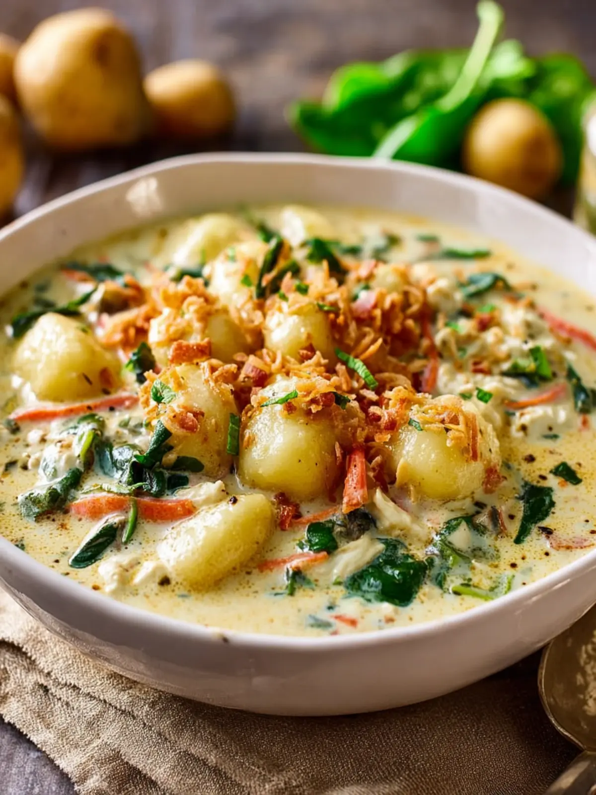 Comforting Flavors: The harmony of creamy broth, tender gnocchi, and fresh vegetables brings the essence of comfort food right to your dinner table. Imagine enjoying a bowl as the day’s worries melt away.