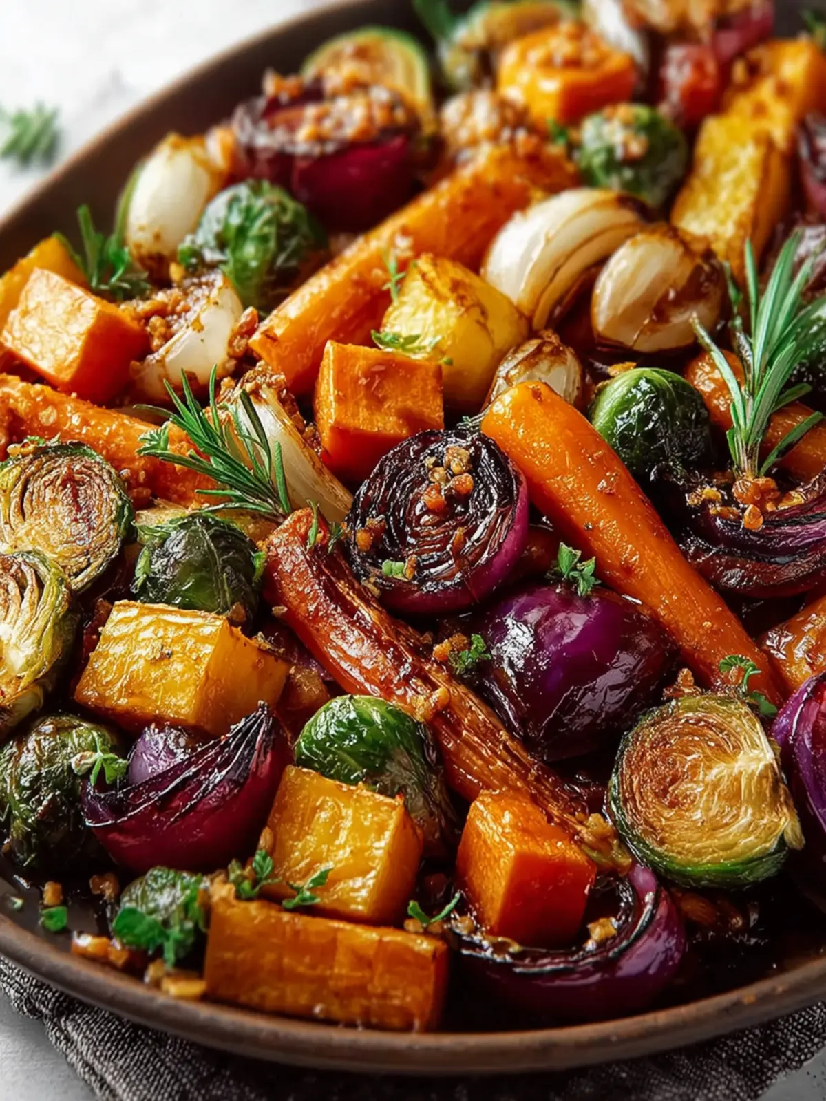 While the classic combination of butternut squash, carrots, and Brussels sprouts is delightful, feel free to switch it up! Try using sweet potatoes, parsnips, or red onions instead. Each vegetable brings a unique flavor and texture to the dish, allowing for you to create your own seasonal masterpiece.