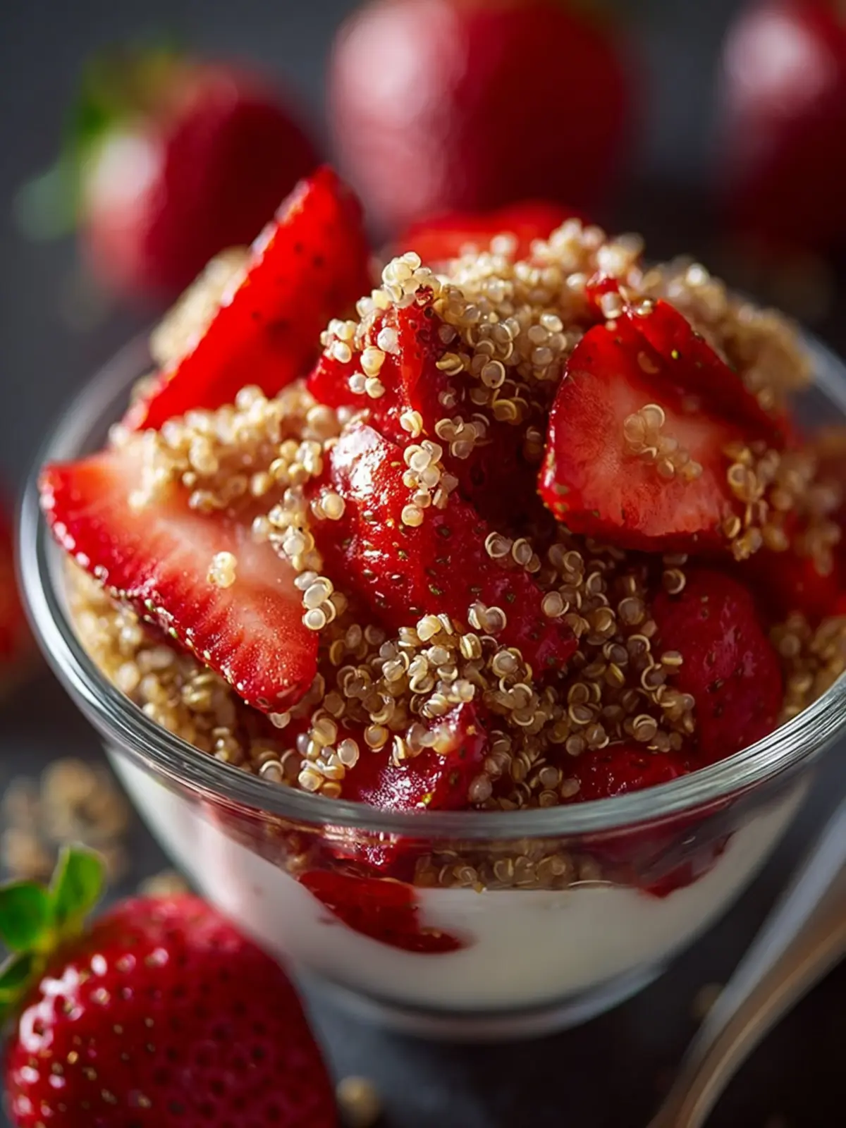A delicious and nutritious breakfast bowl featuring quinoa and strawberries.