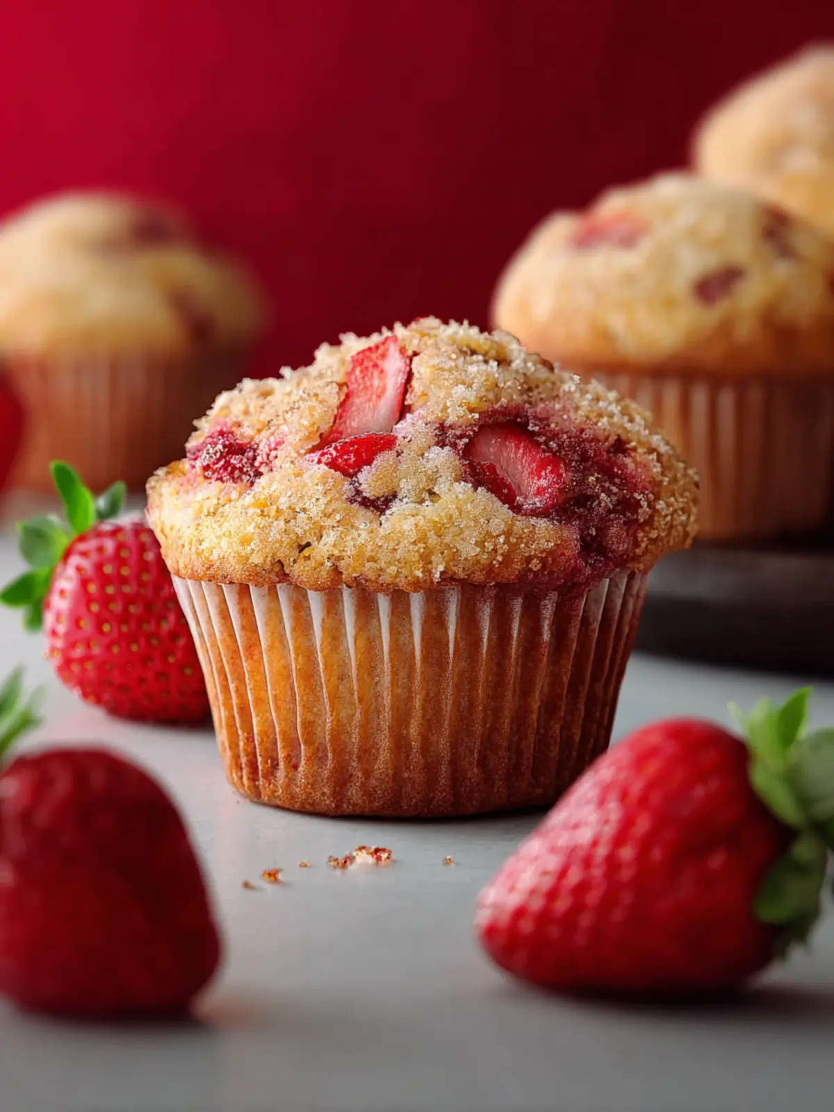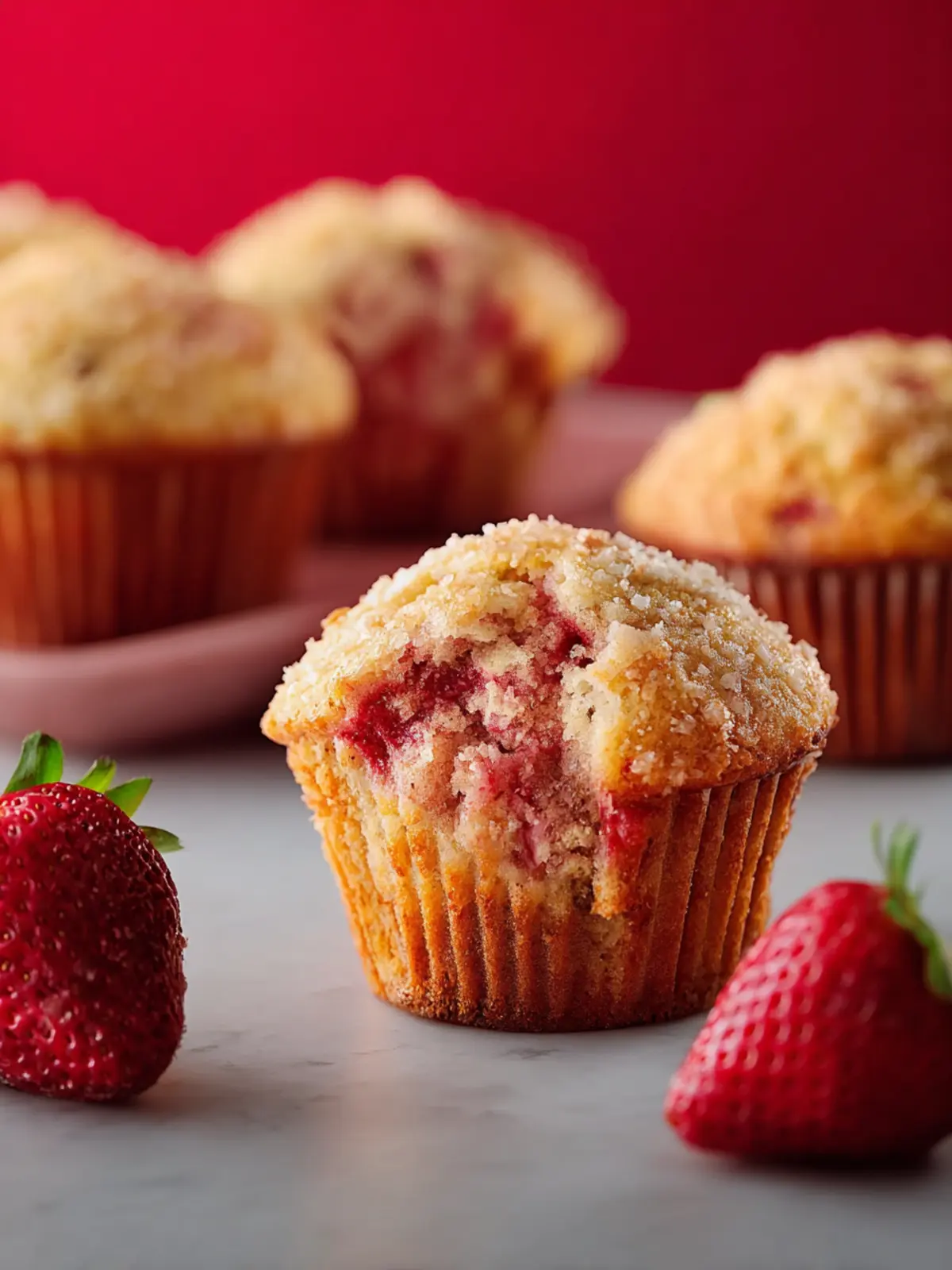 Fresh Strawberries: Diced strawberries are the stars here, bursting with sweet juiciness that defines the muffins.