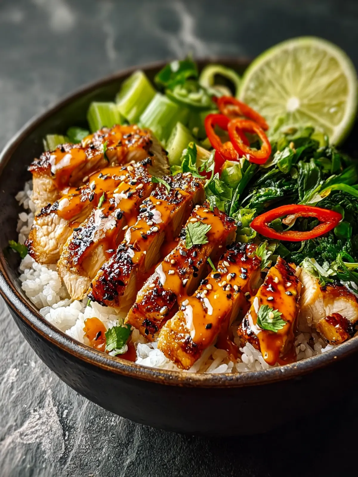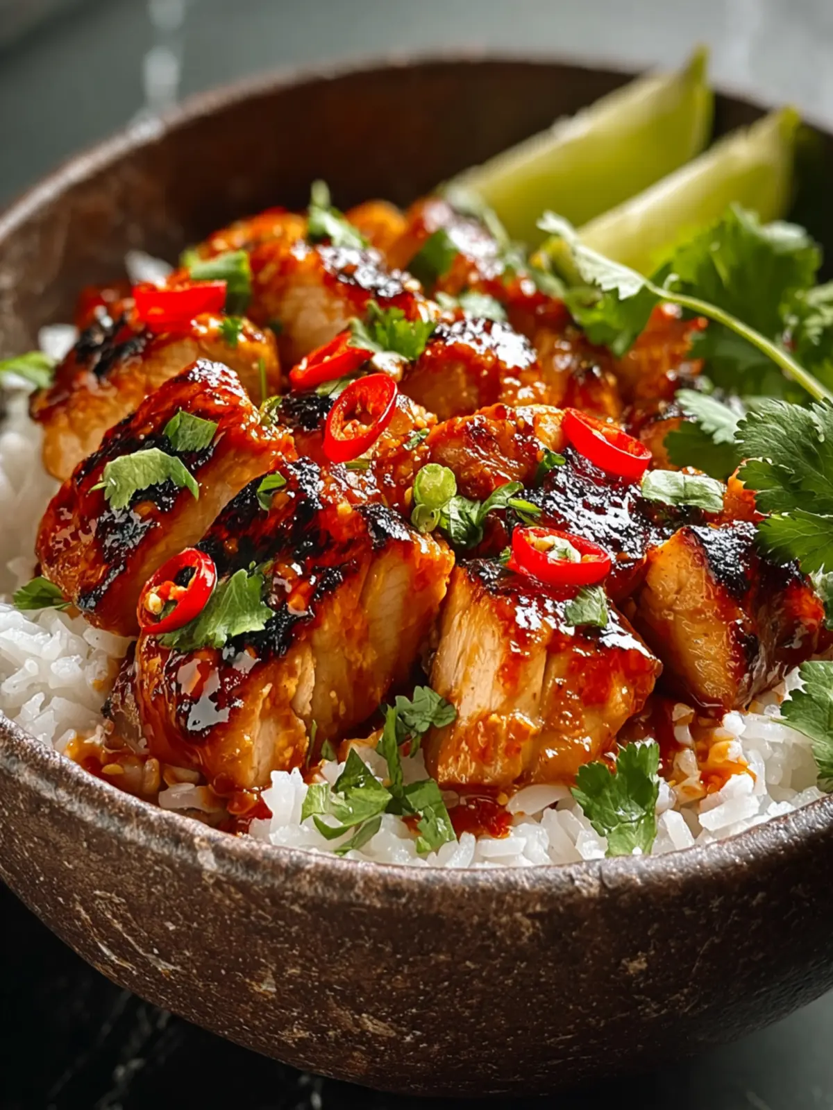 Sweet Chili Chicken Bowl: Juicy Coconut Lime Drizzle Delight